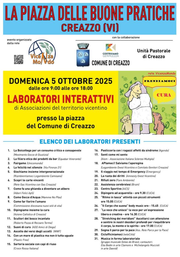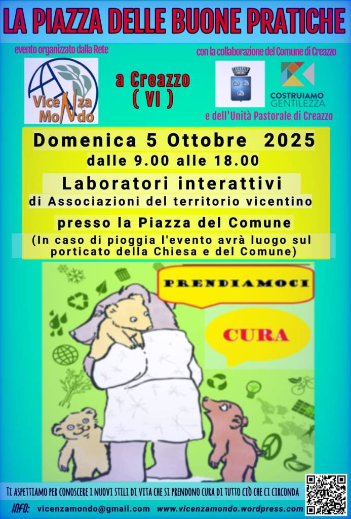Domenica 5 ottoobre 2025 è stata realizzata la Piazza delle Buone Pratiche a Creazzo (VI), promosssa dalla Rete VicenzaMondo con la collaborazione del Comune e dell’Unità Padstorale di Creazzo