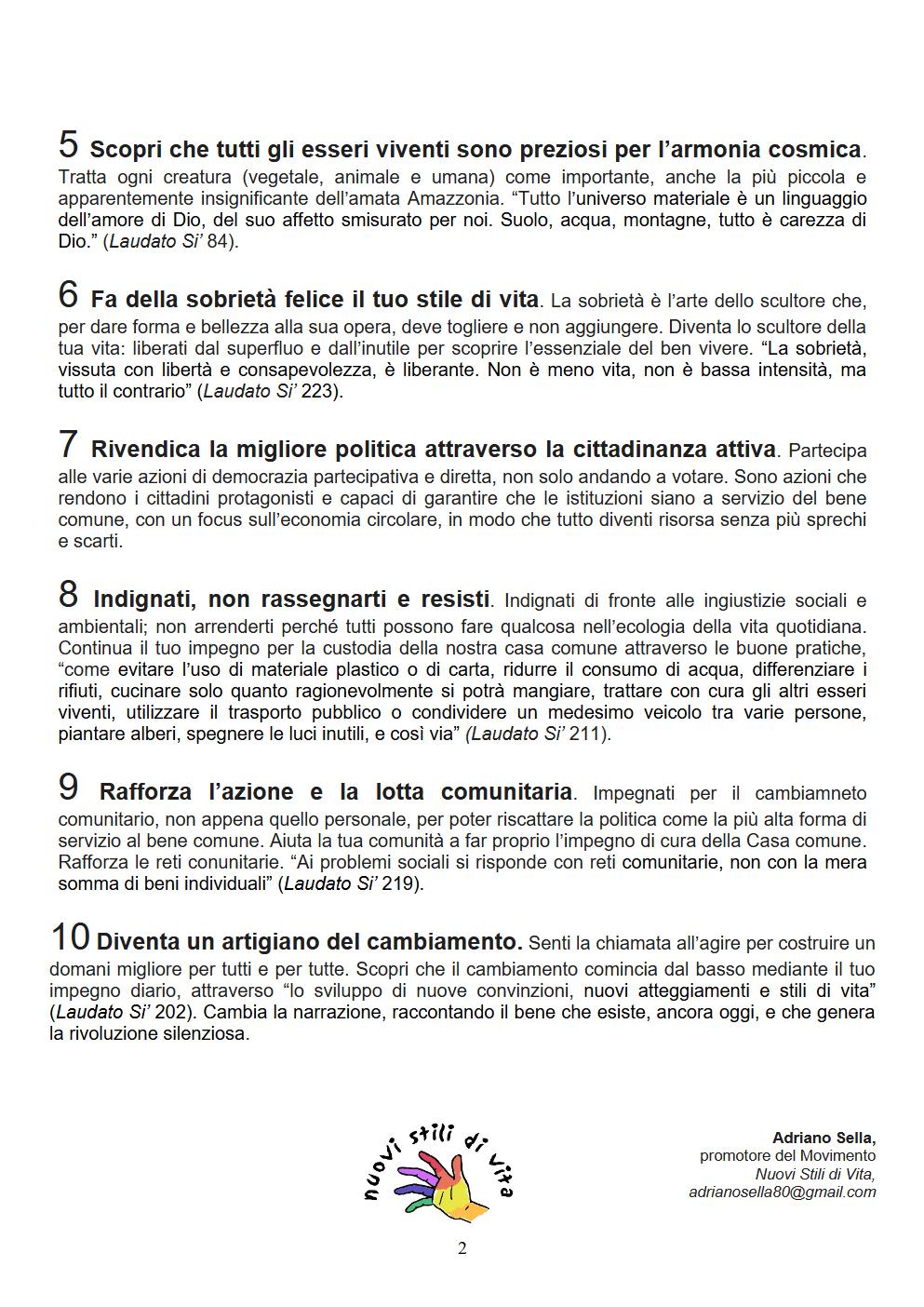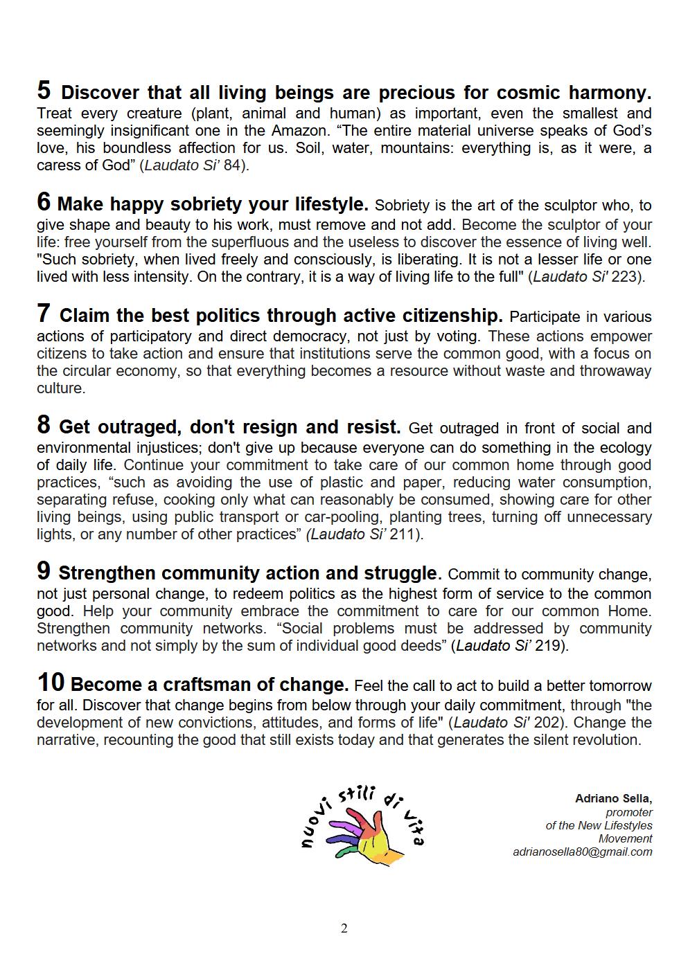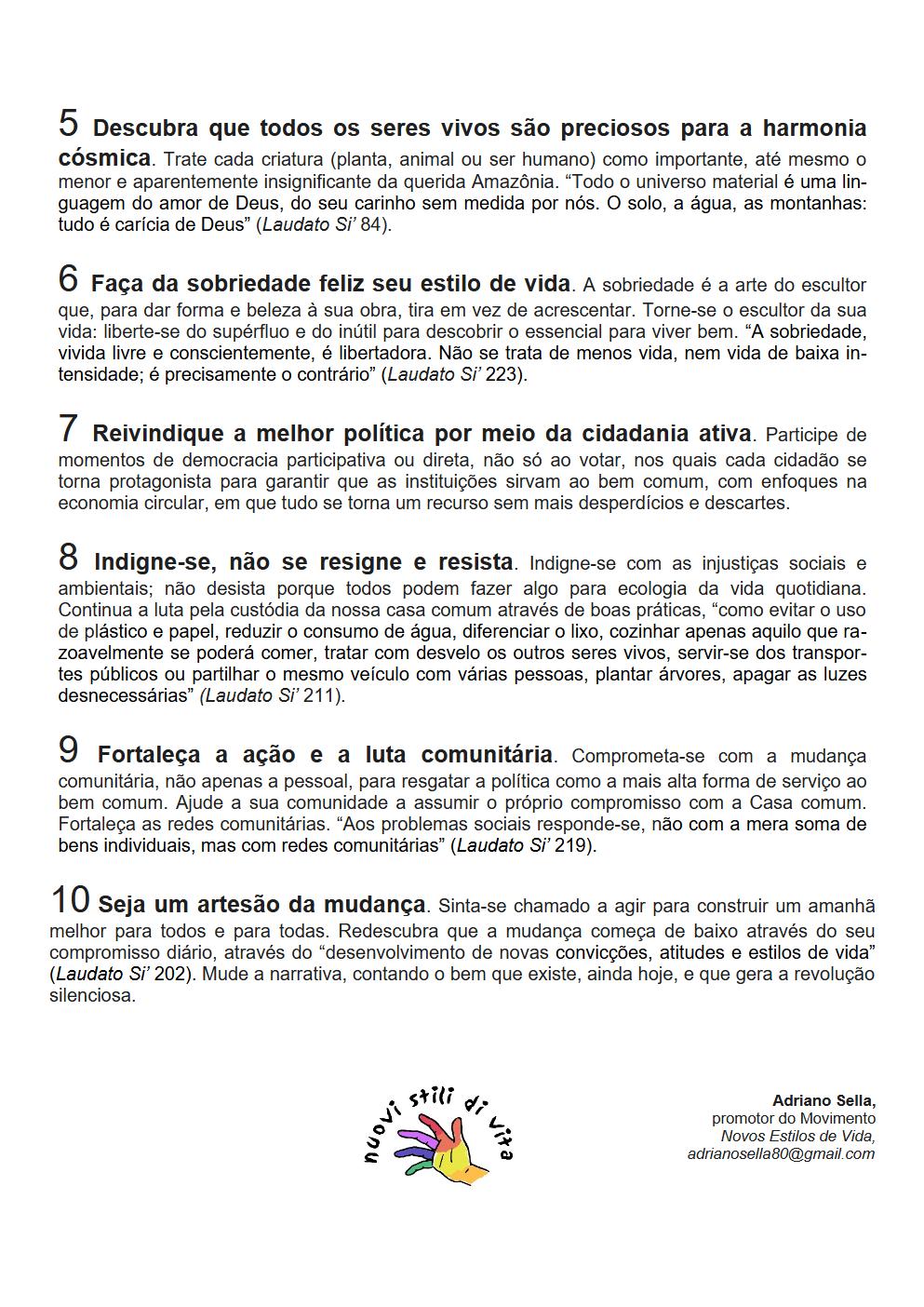 Il decalogo dell’ecologia integrale è uno strumento popolare per stimolare ogni cittadino e cittadina del mondo a fare la propria parte per la cura della Casa comune che è la sorella e madre Terra.