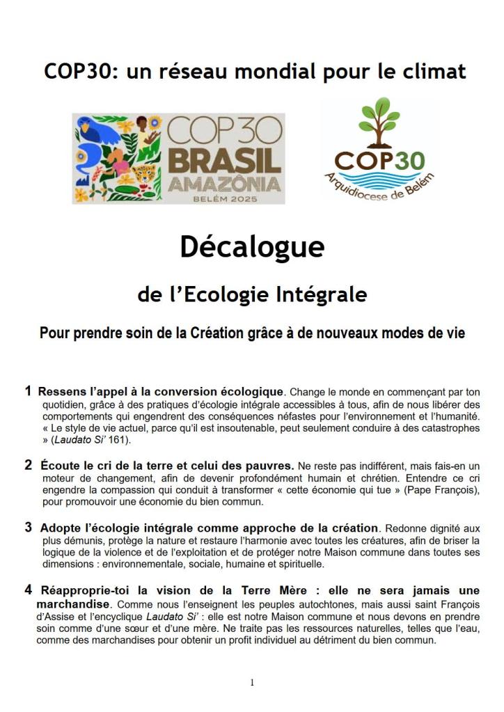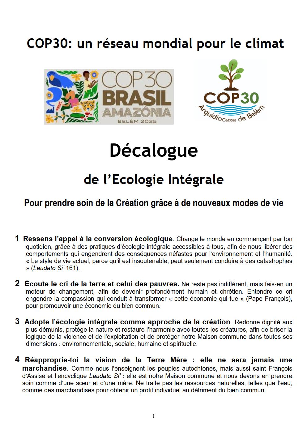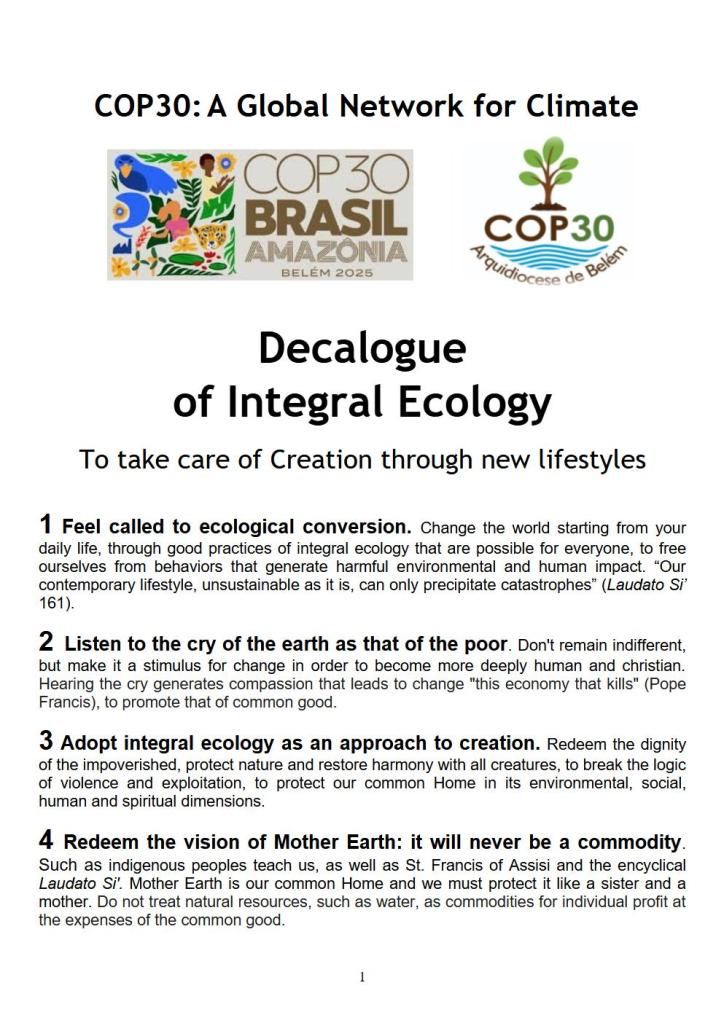 Cari amici e care amiche, su richiesta della Chiesa amazzonica ho preparato il decalogo dell’ecologia integrale per la COP30 che sta accadendo a Belèm (Parà) in Brasile dal 10 al 21 novembre 2025. La Conferenza delle Parti (COP) è il più grande evento globale per le discussioni e i negoziati sui cambiamenti climatici. La città scelta, nel cuore dell’Amazzonia, fornirà al mondo un’occasione unica per discutere di soluzioni climatiche, rafforzare il multilateralismo e promuovere il consenso sugli obiettivi globali per ridurre le emissioni di gas serra.