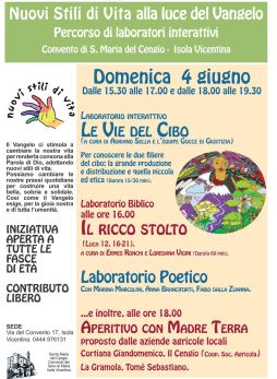 Domenica 4 giugno ci sarà l’ultima tappa del percorso Nuovi Stili di Vita e Vangelo, presso