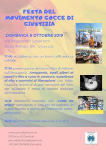 - 17.30 presentazione del nuovo libro di Adriano sull’Amazzonia “Amazzonia, dagli alberi ai popoli e fino a tutte le creature, esperienze di vita e cammini di liberazione” con video, musica e letture di alcune narrazioni del libro, per celebrare il mese di ottobre dedicato all’Amazzonia;
