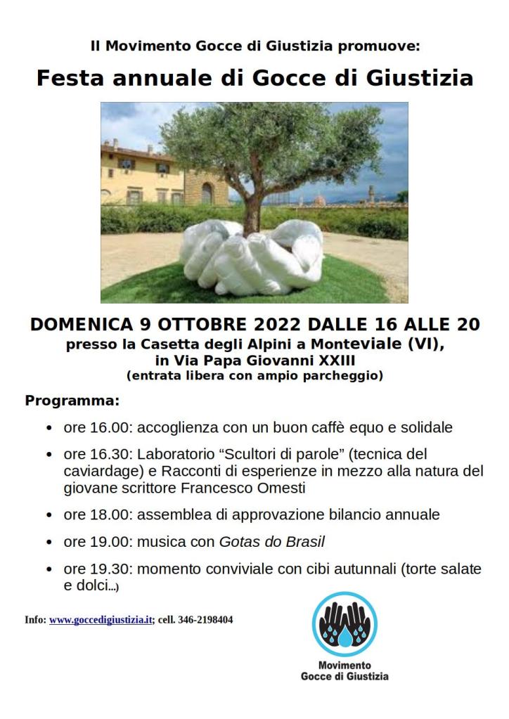 Festa del Movimento Gocce di Giustizia: domenica 9 ottobre