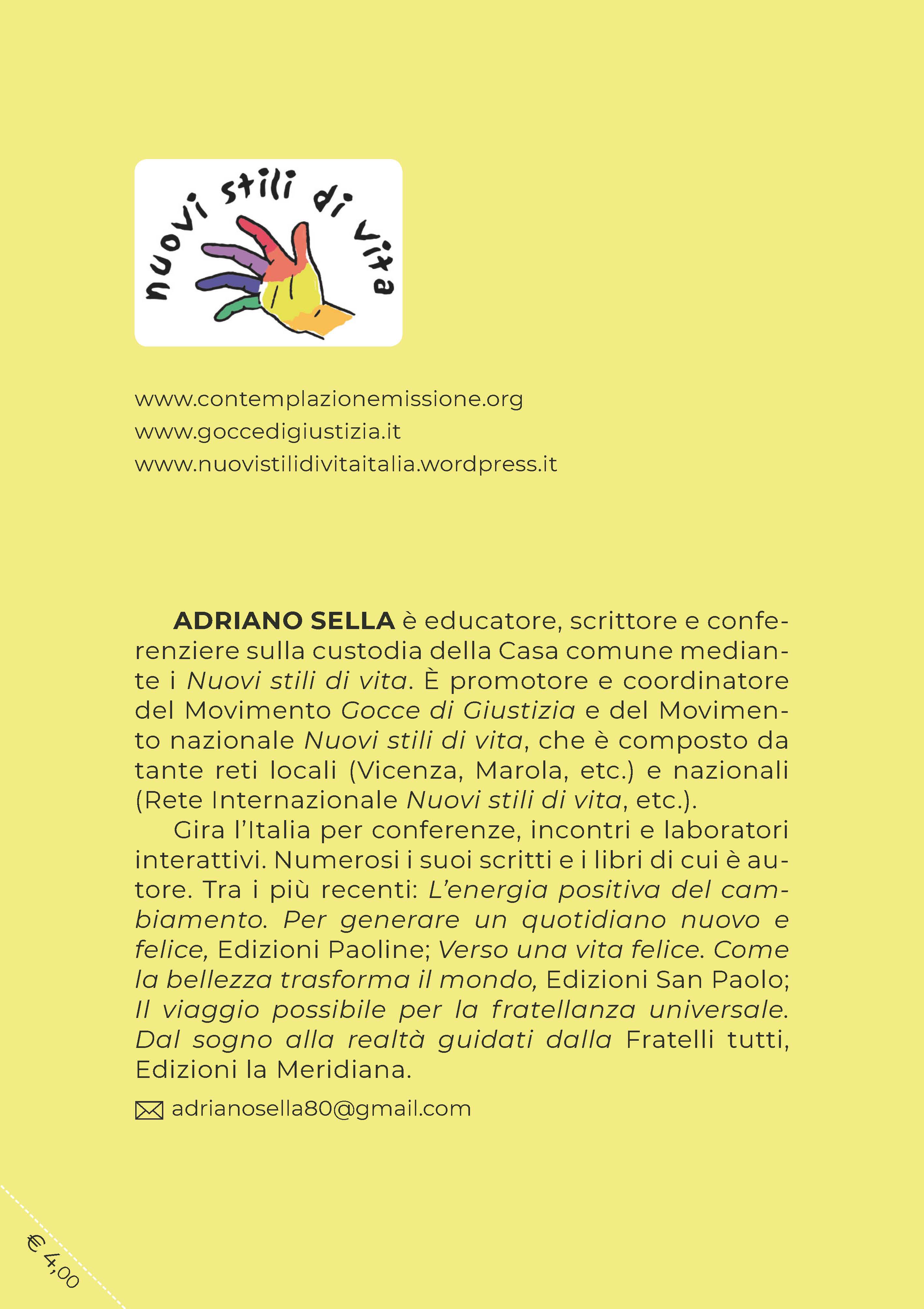 La Baby Bang delle 5 C è un racconto per ragazzi e giovanissimi, pubblicato il 29 agosto 2024. È la storia della Baby Gang delle 5C, cioè finalmente una baby gang in positivo. Sono ragazzi e ragazze che raccontano come riescono a vivere le 5C (custodia, conversione, comunità, cura, cambiamento) per la cura della casa comune. Si tratta di un libretto tascabile 11,5×16,5 di 32 pagine, con un prezzo basso, appena € 4,00. È stato stampato in tipografia per poter tenere un prezzo basso, e quindi molto accessibile a tutti. Per questo, non viene trovato nelle librerie, ma potete fare la richiesta all’autore e verrà spedito via corriere postale. Si tratta di uno strumento, adatto ai ragazzi e giovanissimi, per coinvolgerli nella cura della casa comune, sia durante il Mese del Creato ma anche durante tutto l’anno.