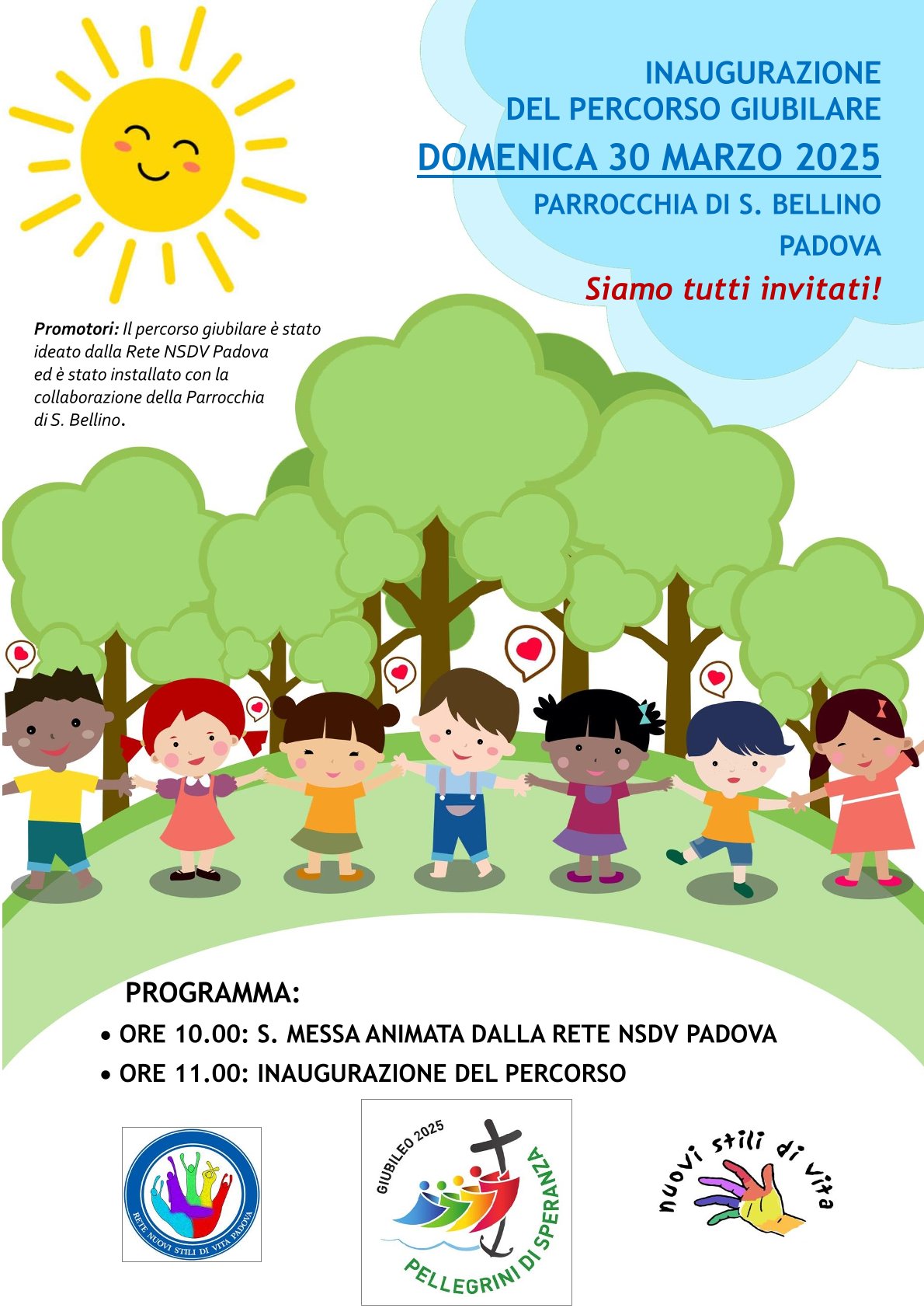 La Rete Nuovi Stili di Vita di Padova ha costruito un percorso giubilare dei nuovi stili di vita, che è stato installato presso la Parrocchia di S. Bellino nel quartiere Arcella di Padova, con la collaborazione della Parrocchia S. Bellino. Il percorso sarà visitabile fino alla fine del Giubileo 2025.