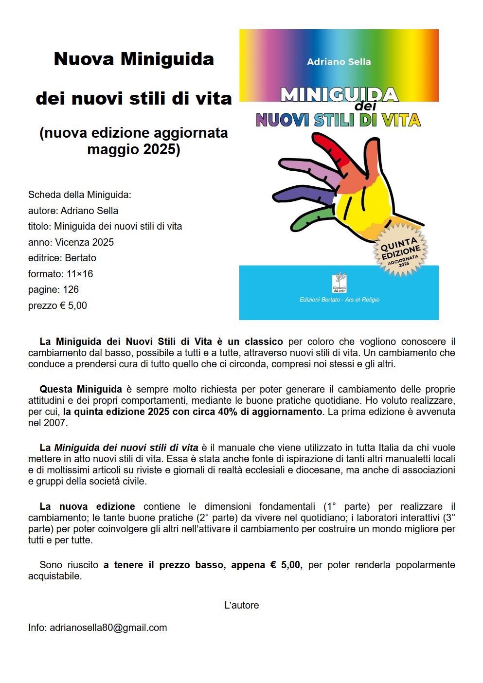 La nuova Miniguida dei Nuovi Stili di Vita è disponibile. Costa appena € 5,00. Per averla, fare richiesta via email adrianosella80@gmail.com, oppure via cell. 346 2198404 (con whatsapp o telegram)