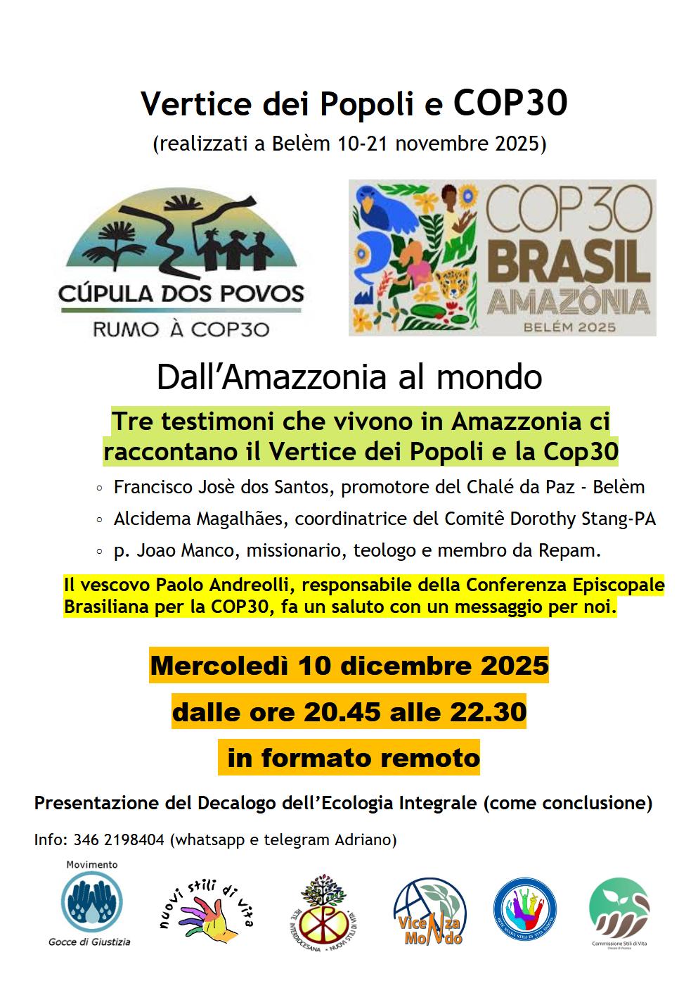 ← Decalogo dell’ecologia integrale: COP30 a Belèm in Brasile