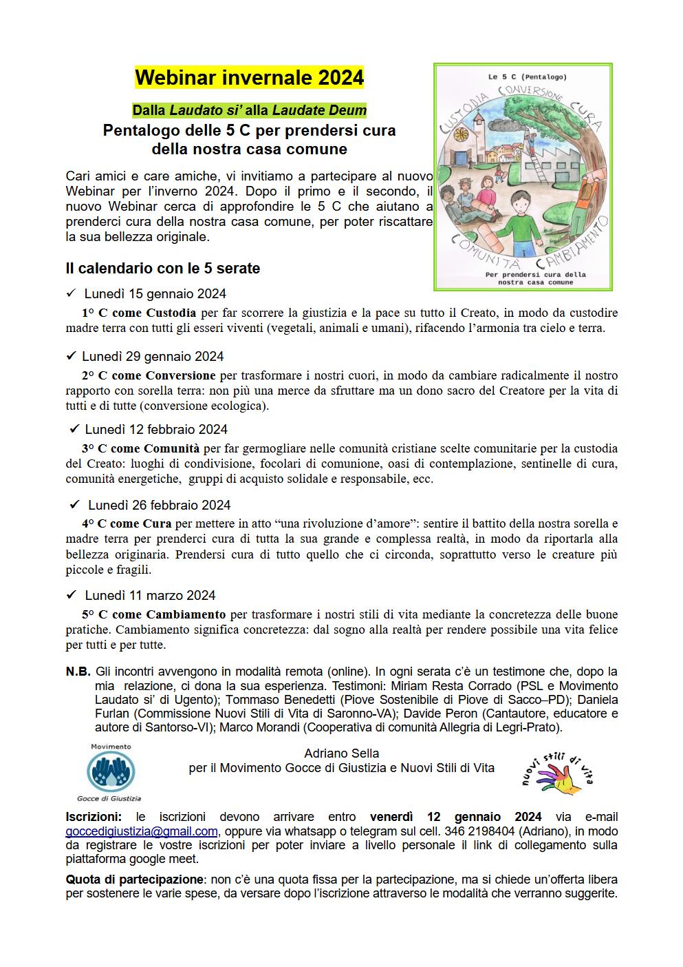 Le iscrizioni entro venerdì 12 gennaio 2024 via e-mail goccedigiustizia@gmail.com oppure via whatsapp o telegram 346 2198404 (Adriano)