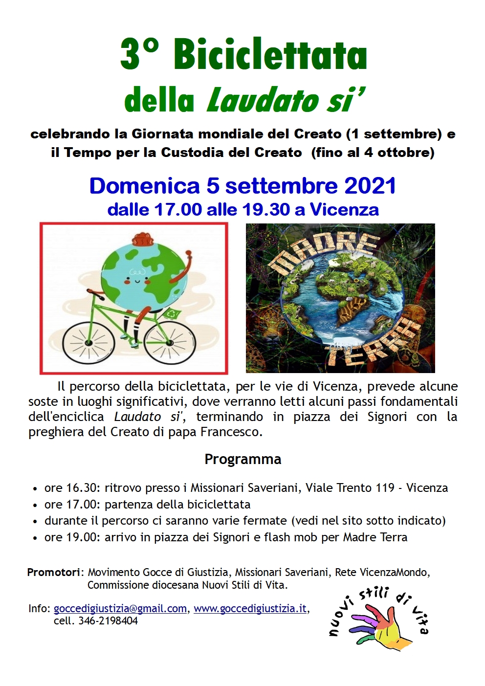 Ispirati da questa bella e importanza iniziativa, la Commissione diocesana nuovi stili di vita promuove il Cammino della Laudato si’ fino al 2030 nelle comunità cristiane della diocesi di Vicenza. Si parte dalle comunità cristiane dell’unità pastorale di Recoaro Terme che vivranno la giornata per la custodia del creato sabato 2 e domenica 2 ottobre, mettendo in atto varie iniziative alla luce della Laudato si’.