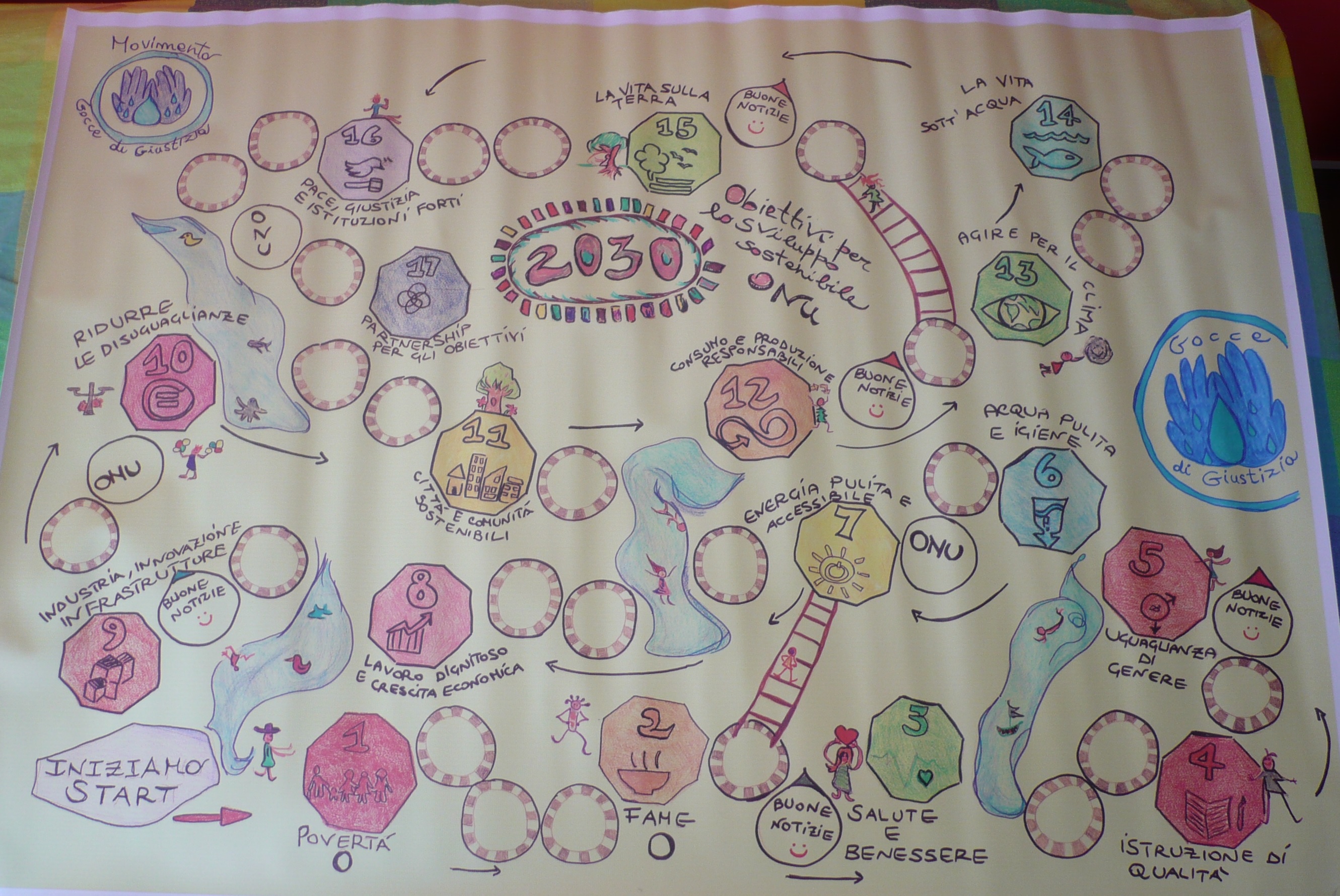 Domenica 10 ottobre dalle 16.30 alle 19.30 ci sarà la festa del movimento Gocce di Giustizia con il nuovo laboratorio in forma del gioco dell’oca